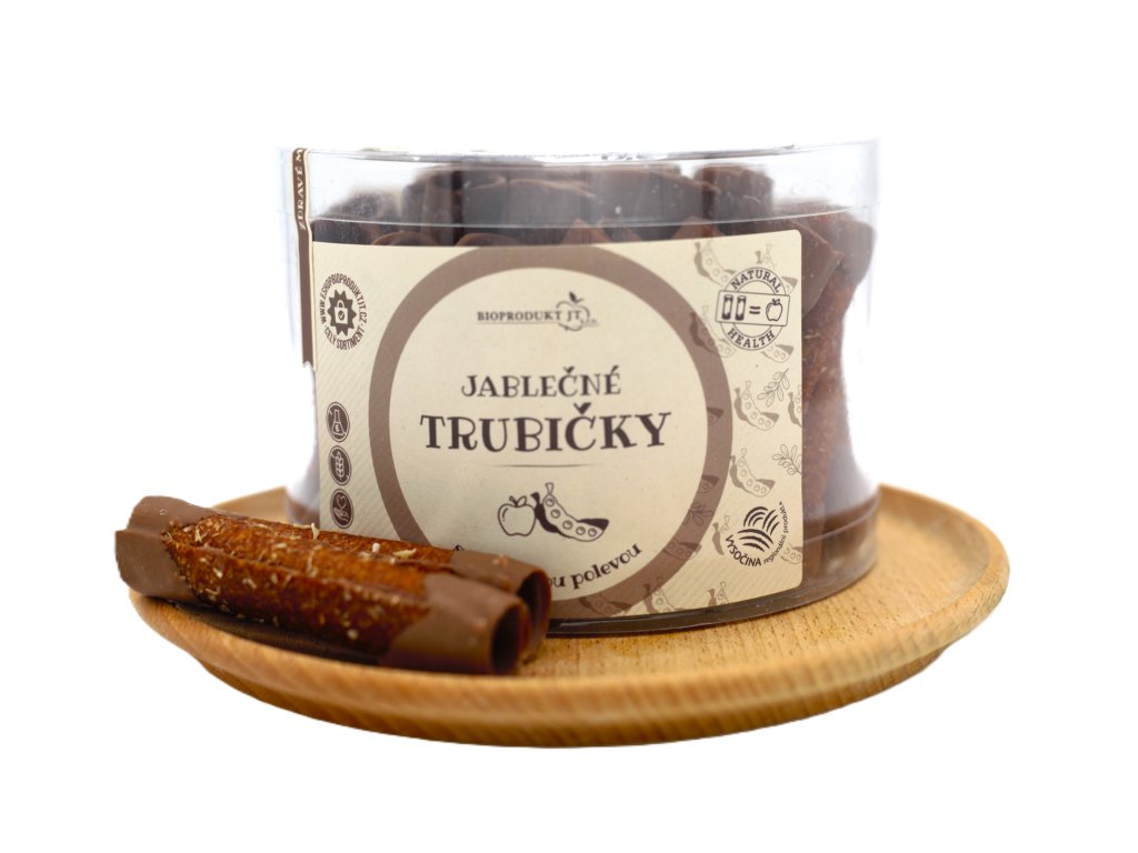Zloženie: Jablková dreň 79%, karobová poleva 20% (cukor, plne stužený rastlinný tuk z trvalo udržateľných zdrojov (plamový, bambucký), sušená srvátka, karobový prášok, emulgátor (sójový lecitín), kokos 1%.