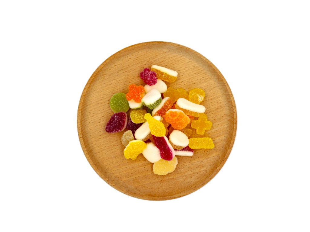 Zmes dvojfarebných želé cukríkov s kyslým posypom