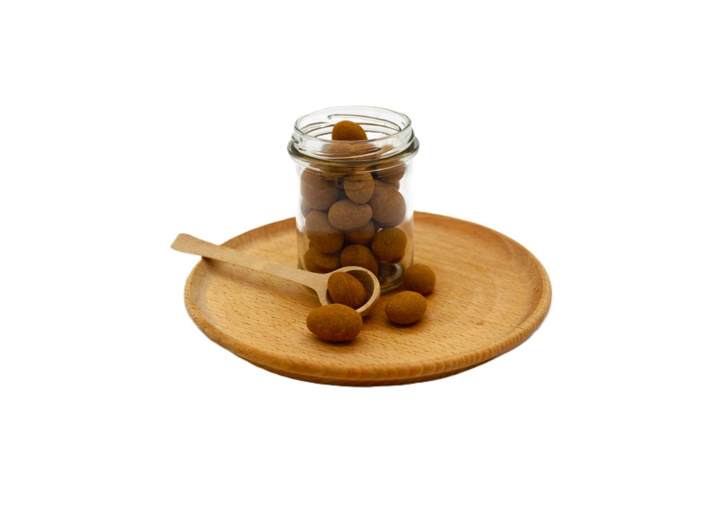 Mandle ako chrumkavé oriešky obalené v mliečnej čokoláde a poprášené škoricou.