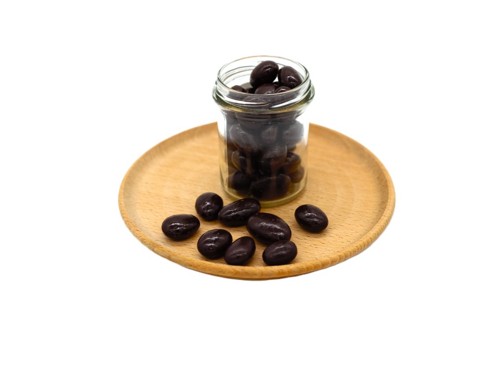 Jemne horká chuť mandlí harmonizuje s horkastou chuťou čokolády