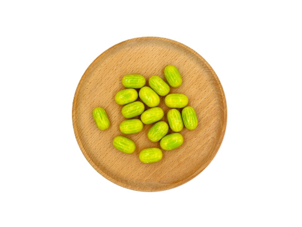 Oválny melón so sladkou cukrová škrupinka. Pri žuvaní sa cukrová škrupinka rozpustí a vynikne kyslastá chuť žuvačky.