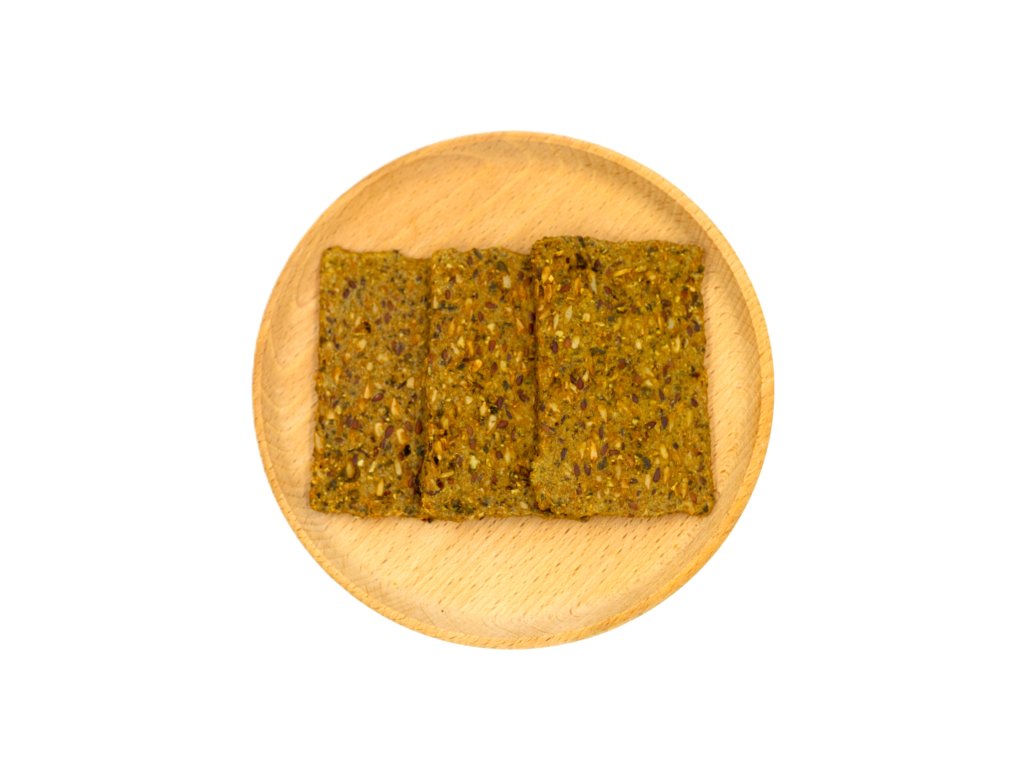 Určite sa zamilujete! Slaný snack, vhodný aj ako náhrada pečiva. Je zdrojom bielkovín, vlákniny a OMEGA 3 nasýtených kyselín. Neobsahuje múku a žiadne pridané látky.